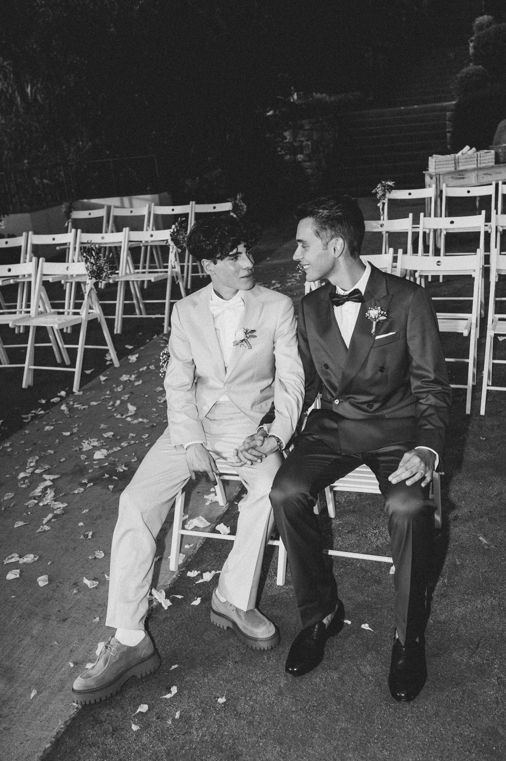 I had met Adrià and Thibaut a month before the wedding in the Horta garden in Barcelona. We clicked immediately. That matters. I never manage or direct people — that’s the point of working in a documentary way — but when there is alignment beforehand, there is an added level of trust before even arriving at the venue. Sometimes that happens in person, and sometimes even through a Zoom call. In those moments, you understand what is required of you and how to go about it.